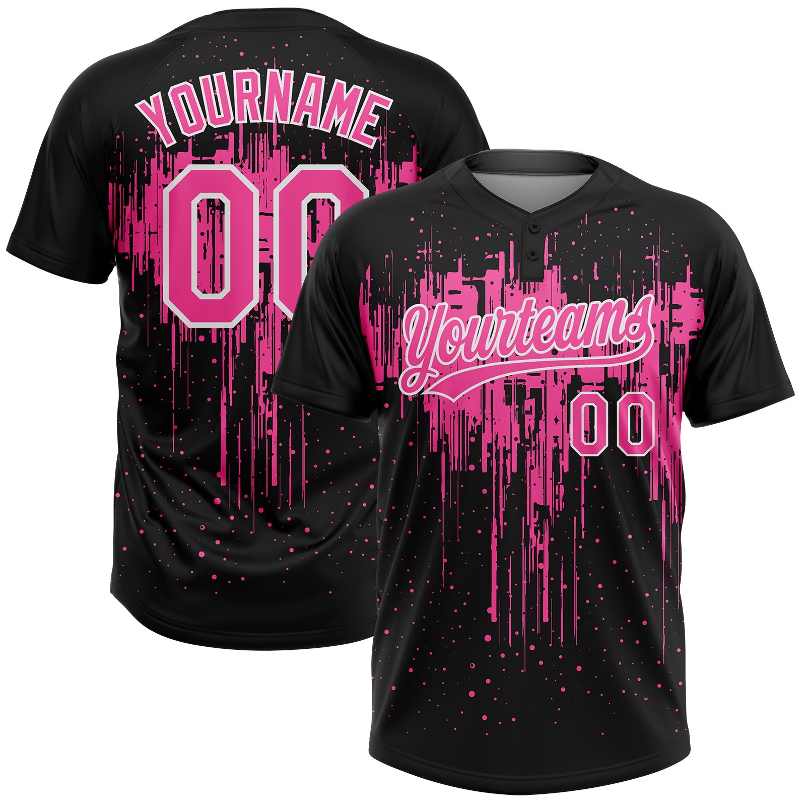 Custom Black Pink-White Dripping Splatter Paint Two-Button Unisex Softball Jersey