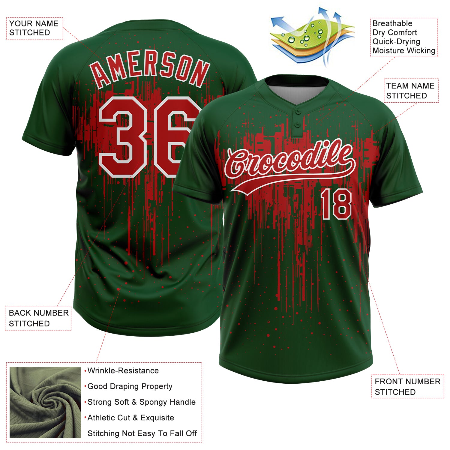 Custom Green Red-White Dripping Splatter Paint Two-Button Unisex Softball Jersey