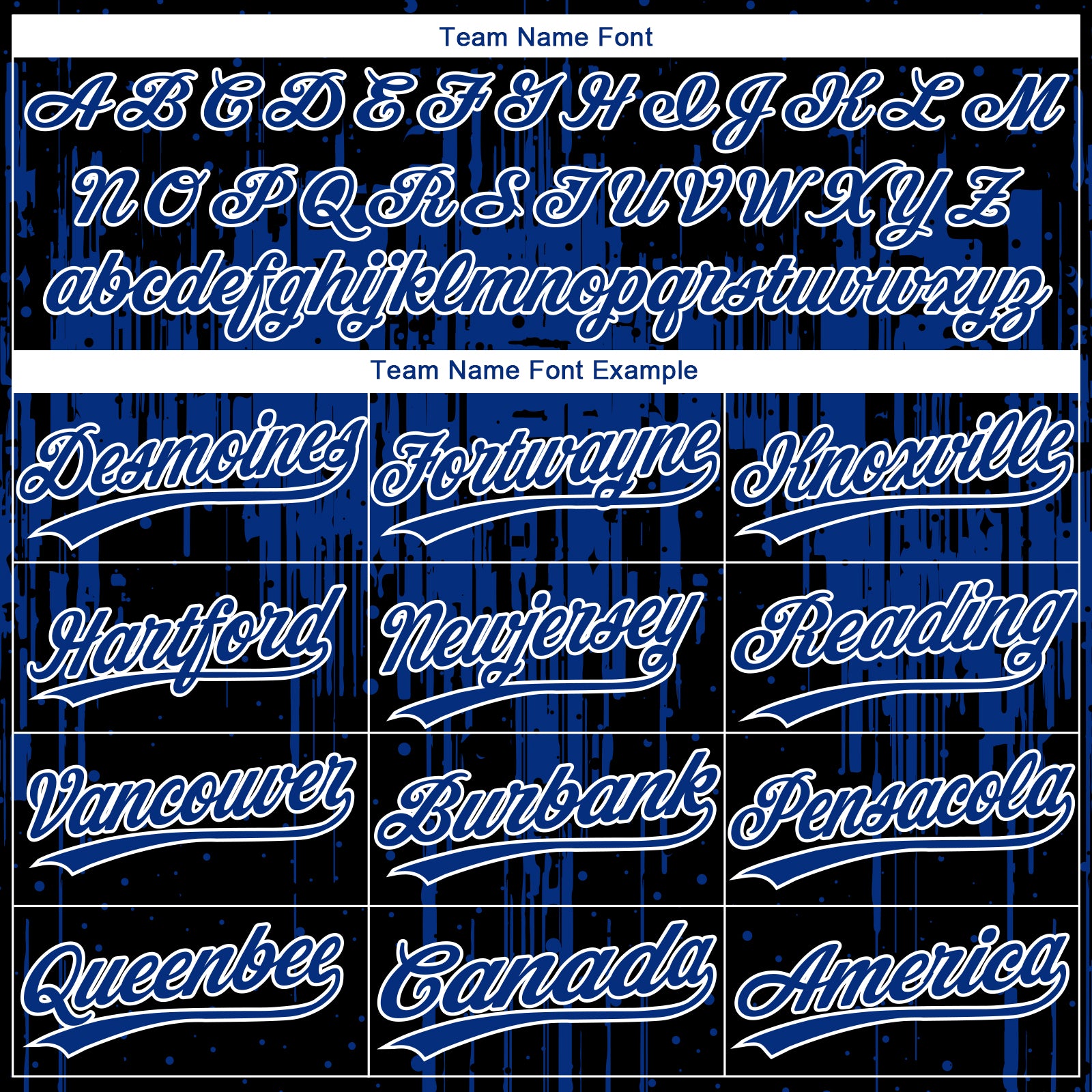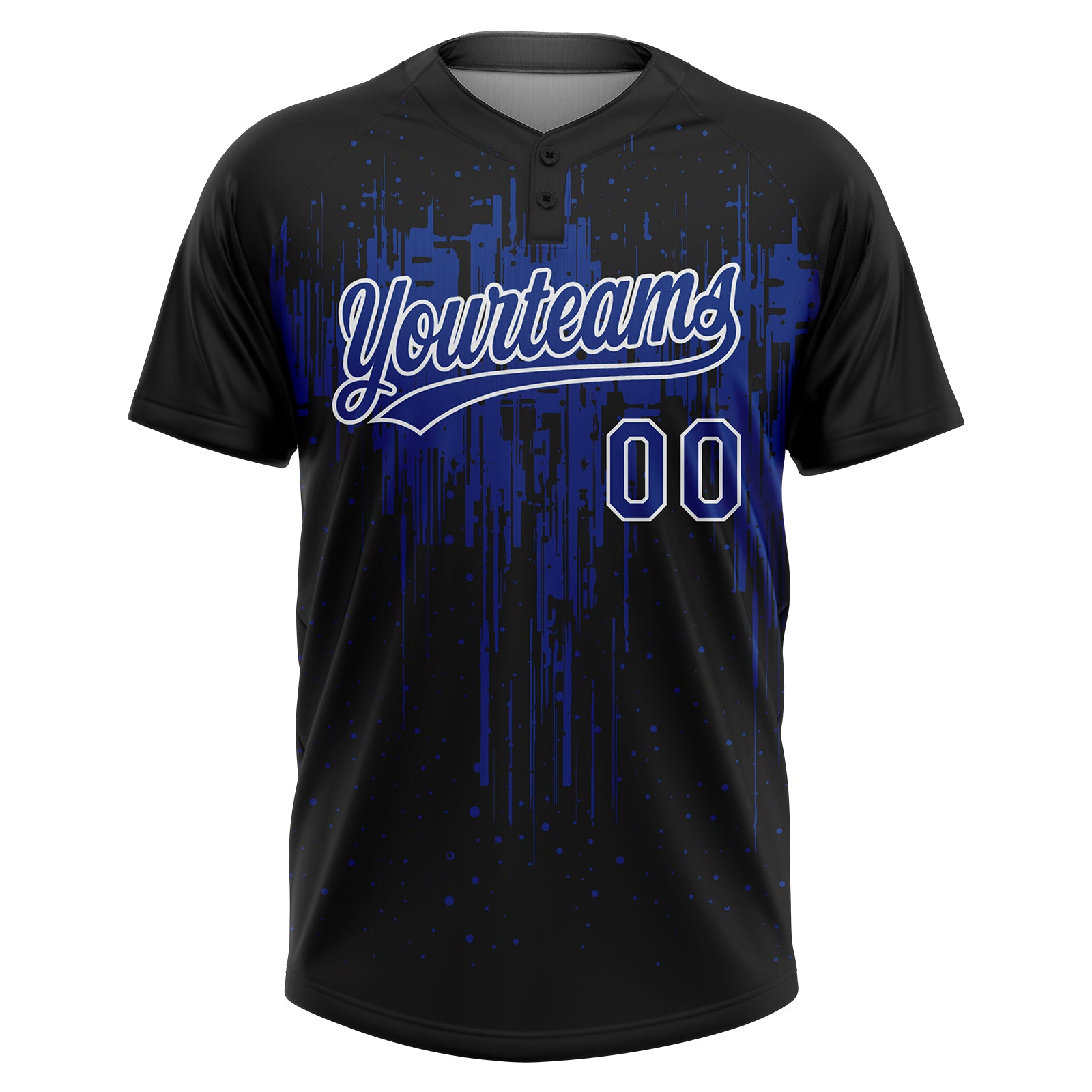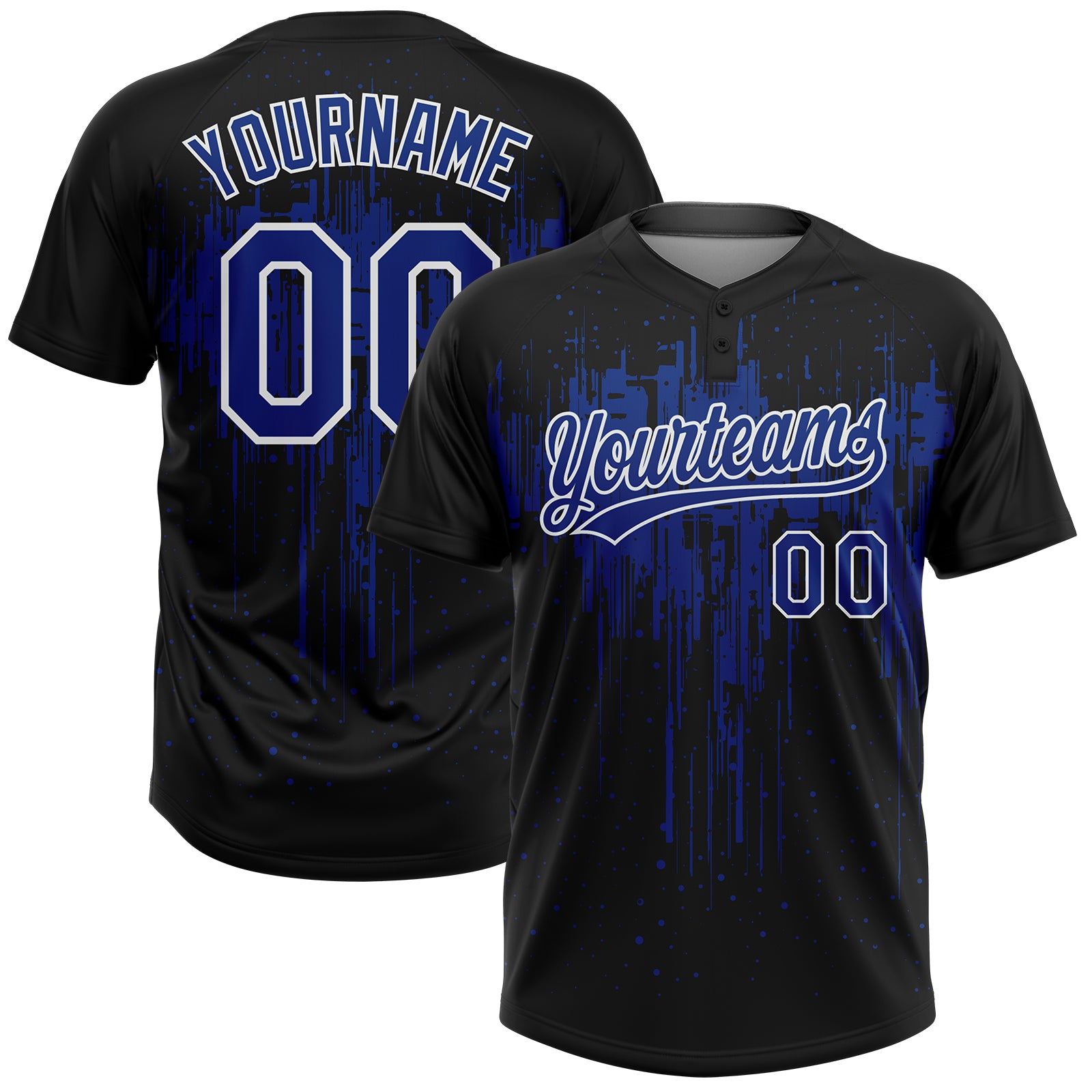 Custom Black Royal-White Dripping Splatter Paint Two-Button Unisex Softball Jersey
