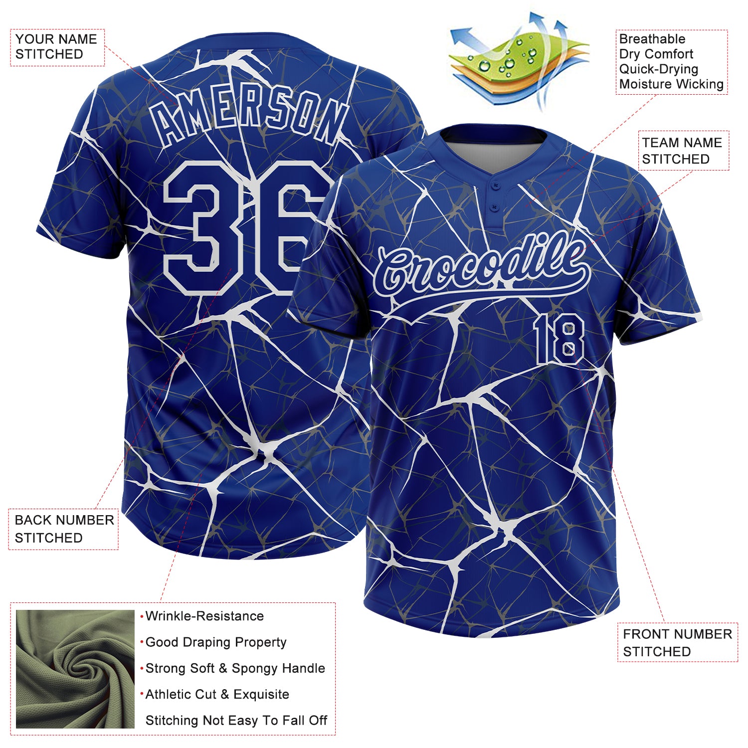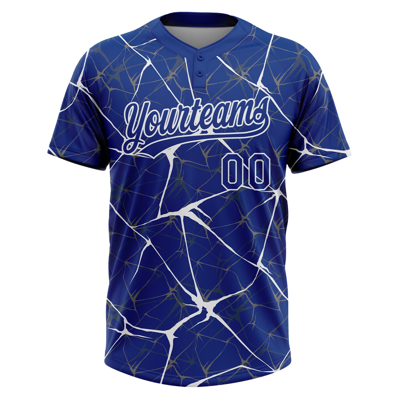 Custom Royal White 3D Pattern Design Abstract Network Two-Button Unisex Softball Jersey
