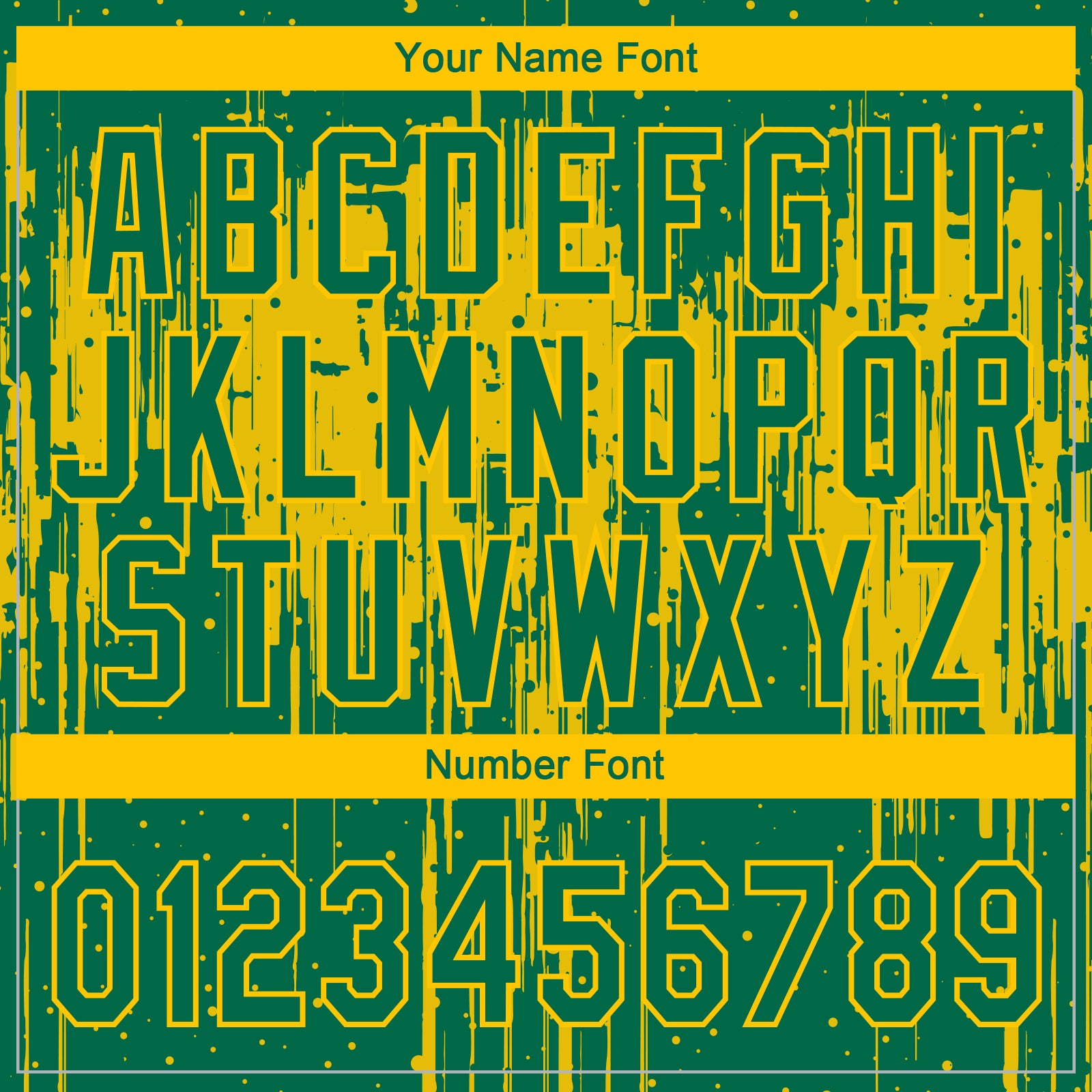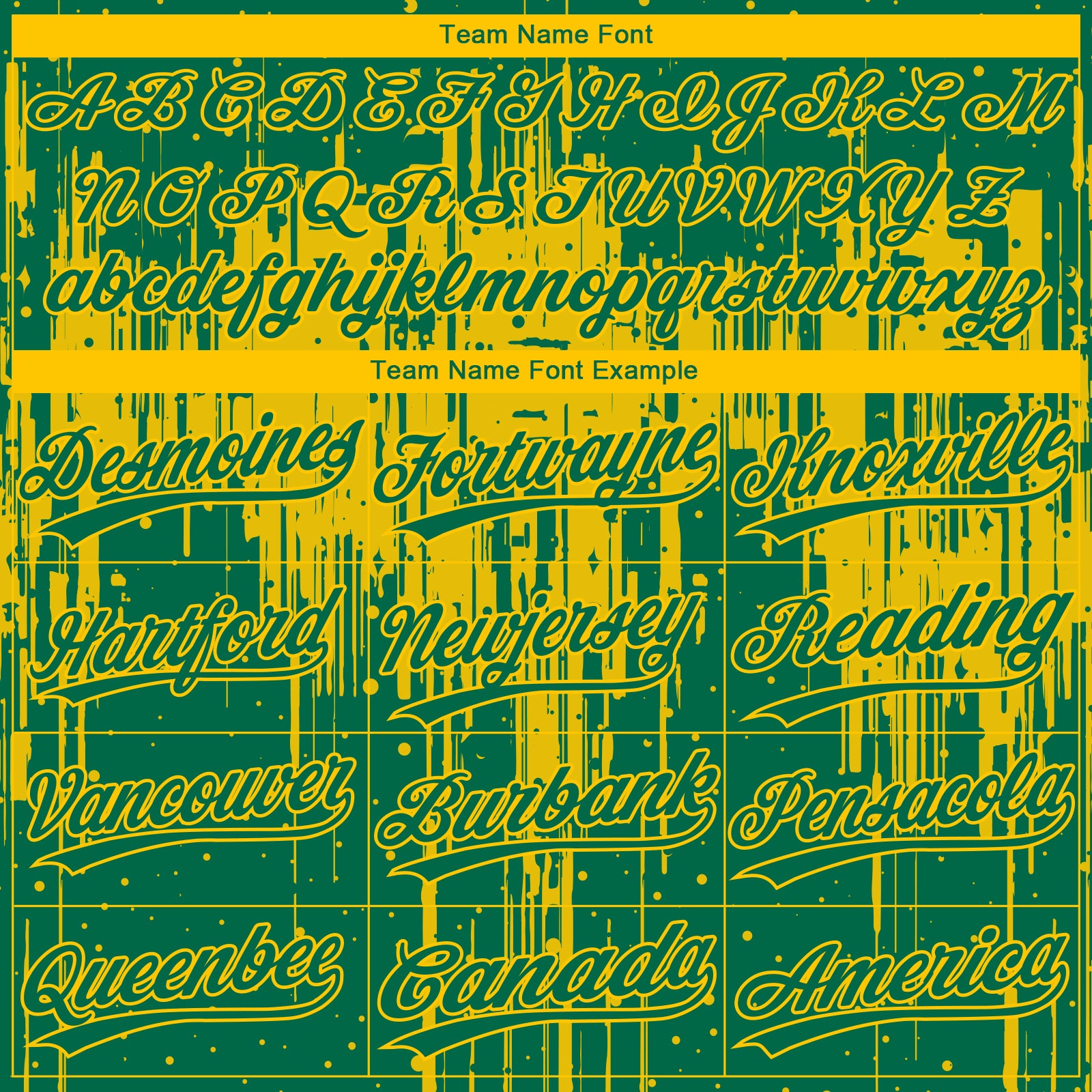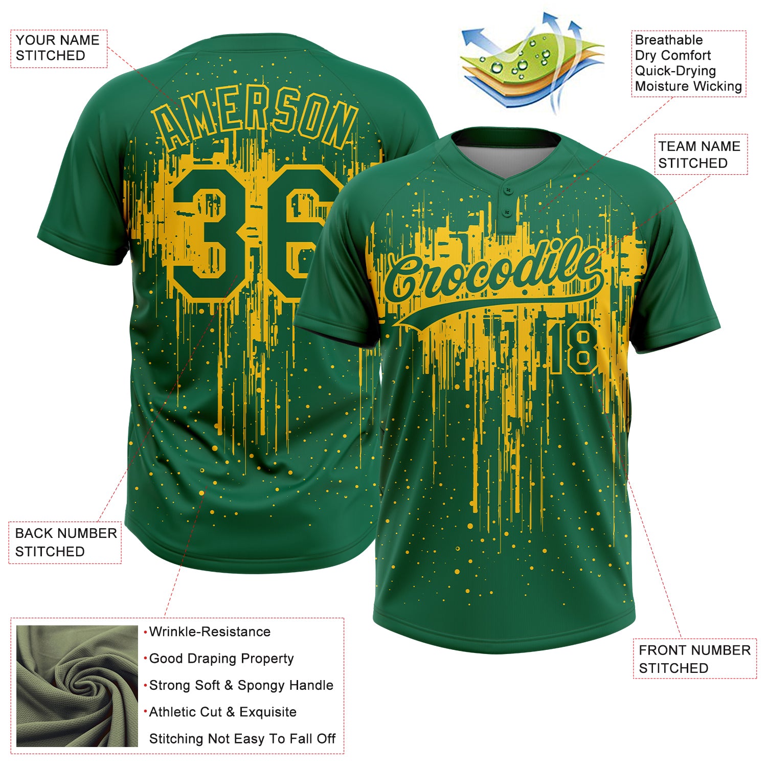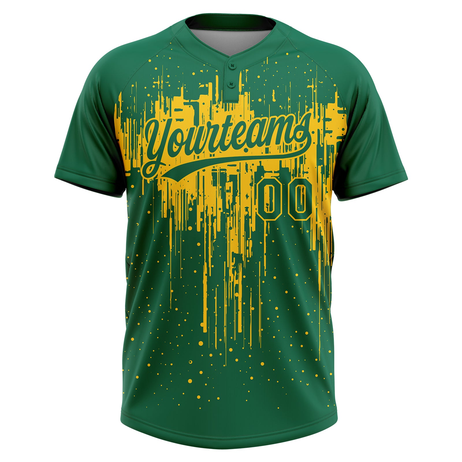 Custom Kelly Green Yellow Dripping Splatter Paint Two-Button Unisex Softball Jersey