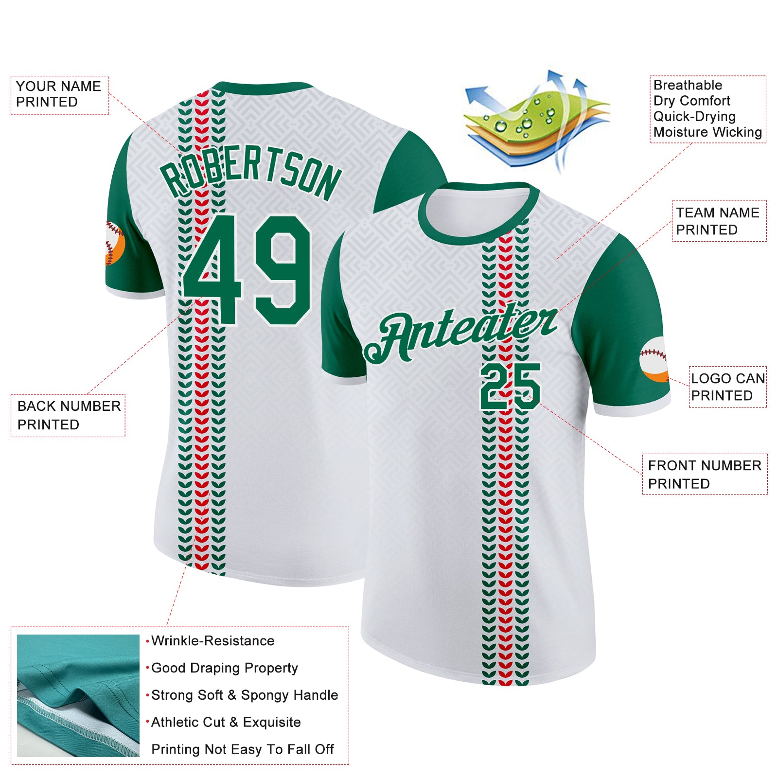 Custom White Kelly Green-Red Italy Abstract Pattern Performance T-Shirt