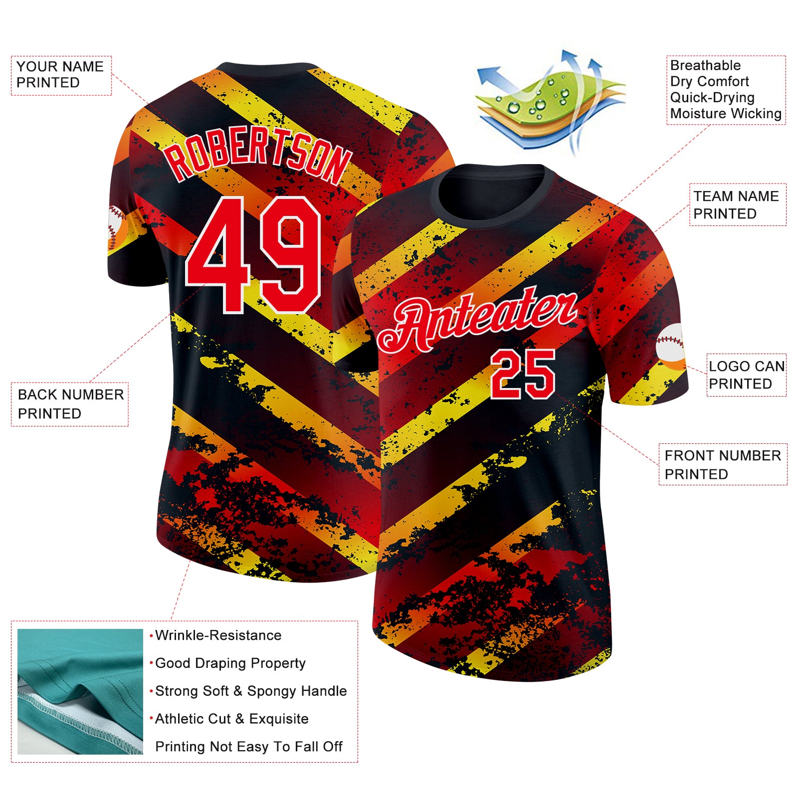 Custom Black Fire Red Yellow-White Germany Splash Performance T-Shirt