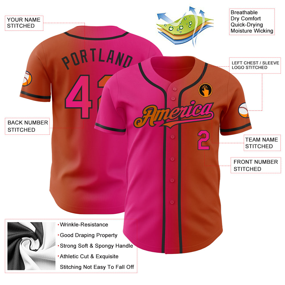 Custom Texas Orange Hot Pink-Black Authentic Gradient Fashion Baseball Jersey