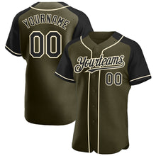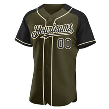 • Загрузить изображение в средство просмотра галереи, Custom Olive Black-Cream Authentic Raglan Sleeves Salute To Service Baseball Jersey