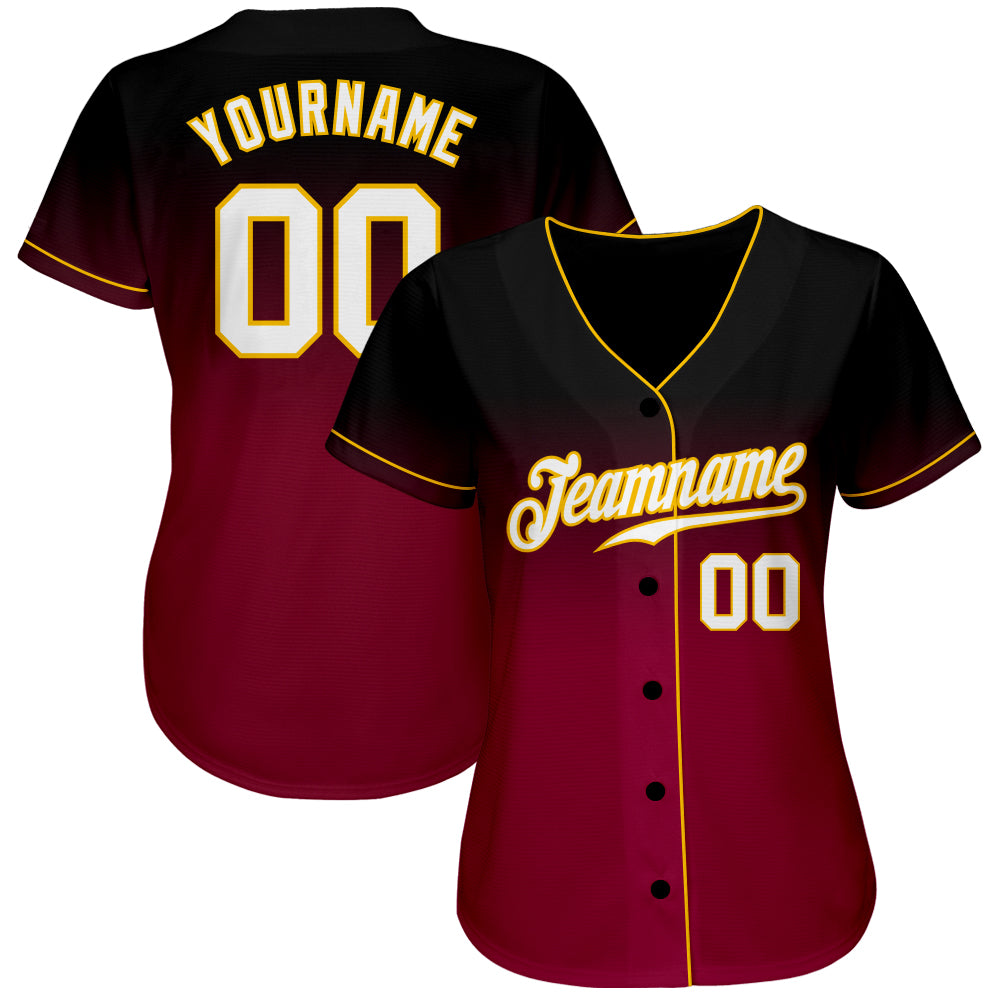 Custom Black White-Crimson Authentic Fade Fashion Baseball Jersey