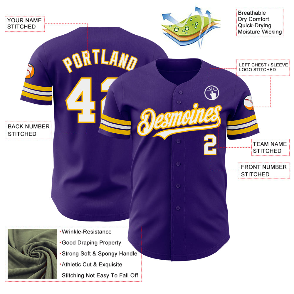 • Загрузить изображение в средство просмотра галереи, Custom Purple White-Gold Authentic Baseball Jersey