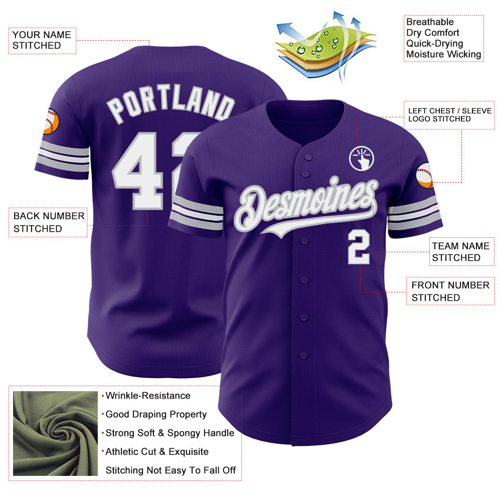 Custom Purple White-Gray Authentic Baseball Jersey
