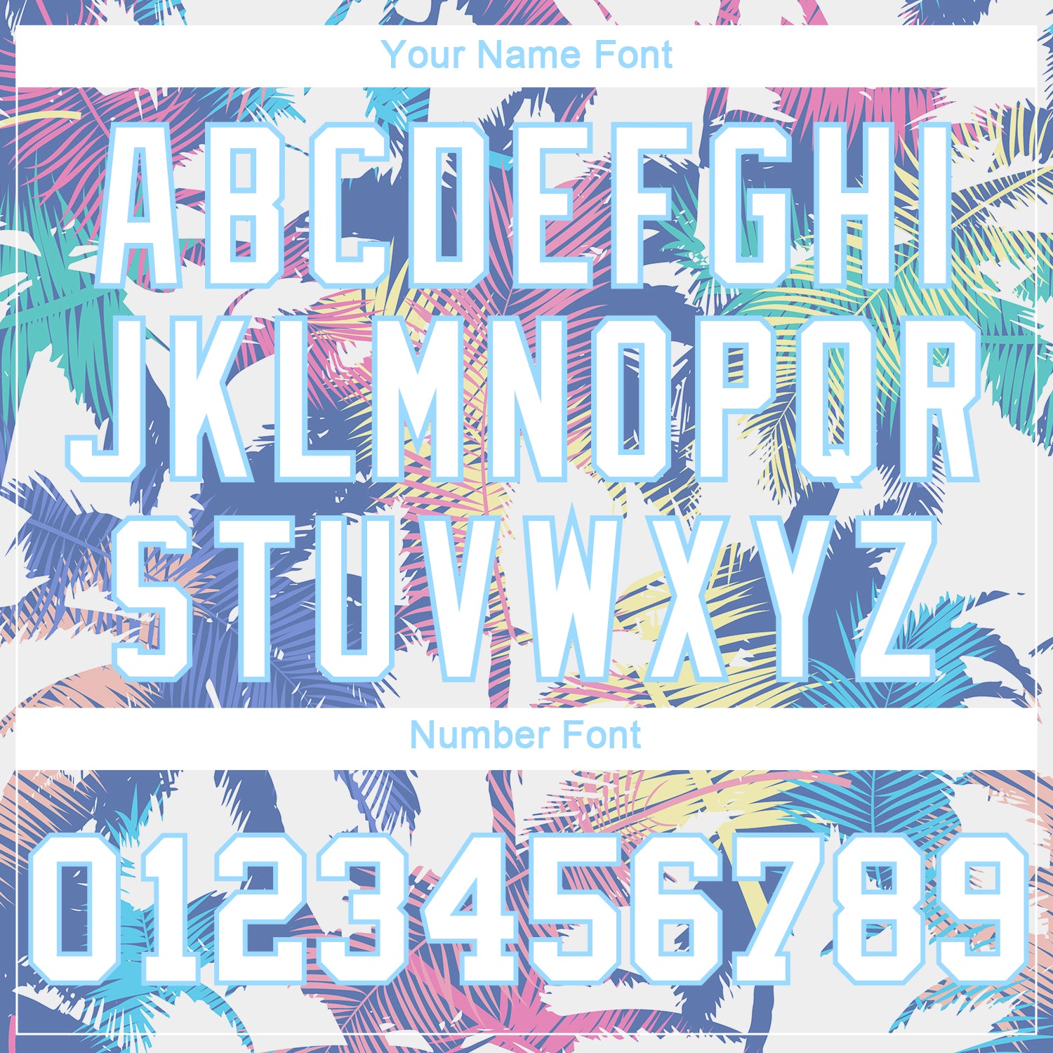 Custom Women's White White-Light Blue Hawaii Palm Trees 3D V-Neck Cropped Baseball Jersey