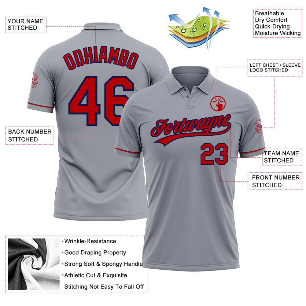 Custom Gray Red-Navy Performance Vapor Golf Polo Shirt