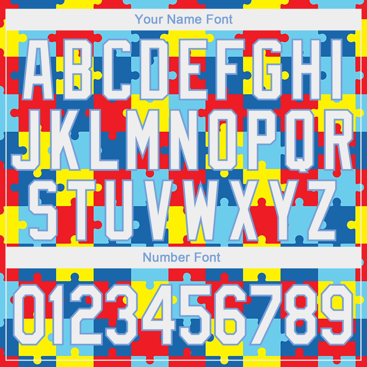 Custom Stitched Autism Awareness Puzzle Pieces White-Light Blue 3D Pattern Design Sports Pullover Sweatshirt Hoodie