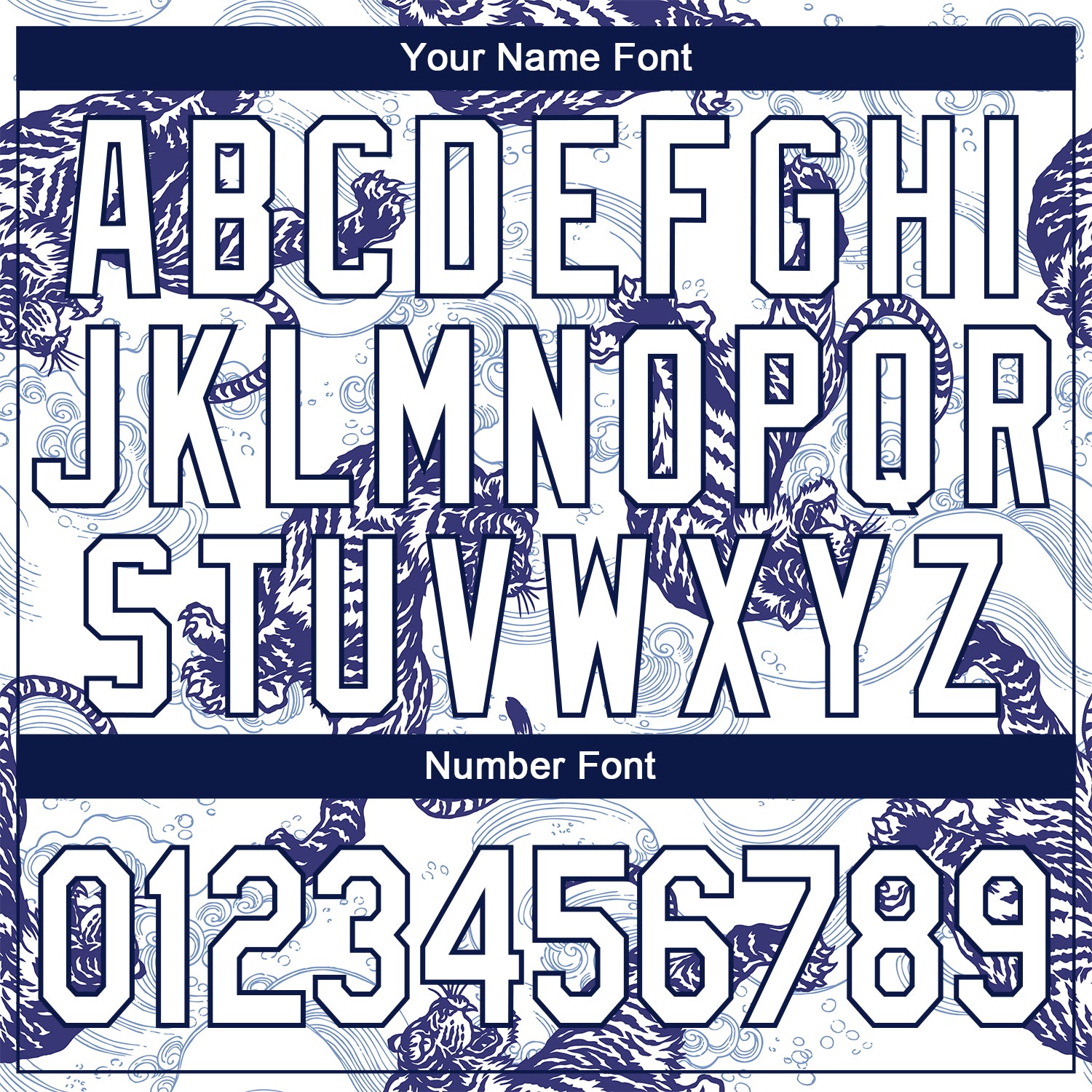 Custom Stitched White Navy 3D Pattern Design Tiger Sports Pullover Sweatshirt Hoodie