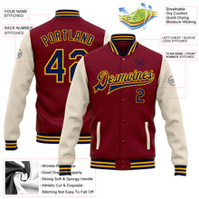 • Загрузить изображение в средство просмотра галереи, Custom Crimson Navy Cream-Gold Bomber Full-Snap Varsity Letterman Two Tone Jacket