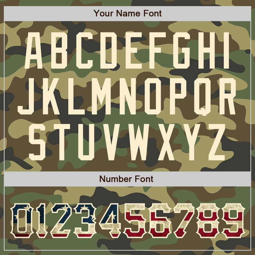 Custom Camo Vintage USA Flag Cream-Maroon Bomber Full-Snap Varsity Letterman Salute To Service Jacket
