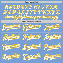 • Загрузить изображение в средство просмотра галереи, Custom Light Blue White Gold-Black Bomber Full-Snap Varsity Letterman Jacket