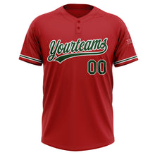 Custom Red Green-White Two-Button Unisex Softball Jersey