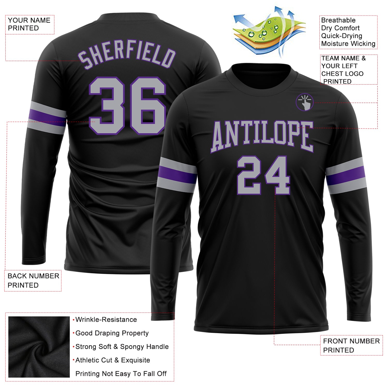 Custom Black Gray-Purple Long Sleeve Performance T-Shirt