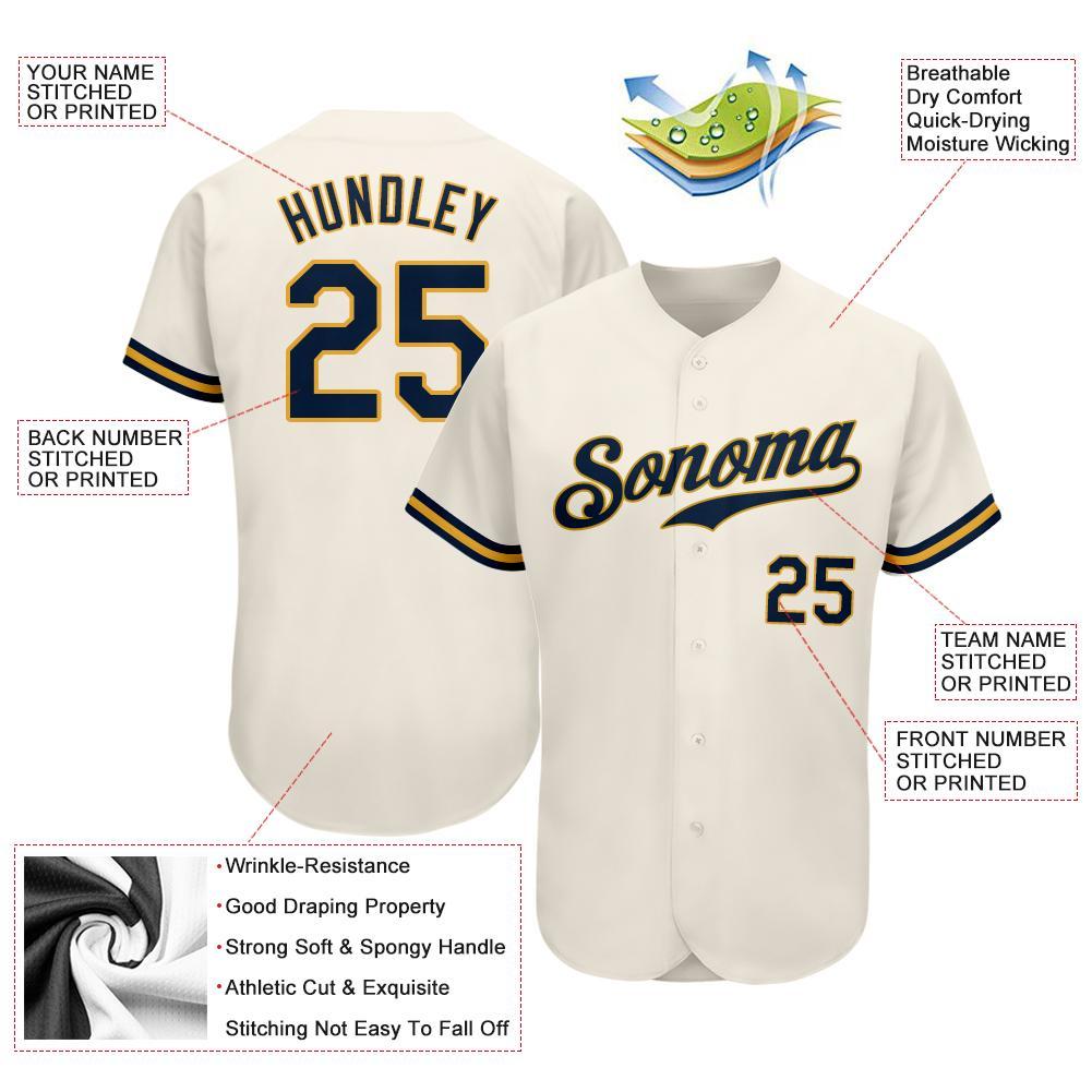 Custom Cream Navy-Gold Authentic Baseball Jersey